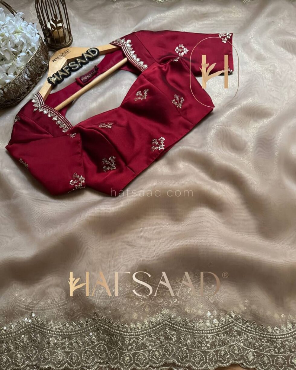 Presenting an exclusive designer creation from Nice Creation, Design No. NC – 5441. This stunning saree is crafted from Heavy Soft Nylon Organza, offering a graceful drape. It features intricate sequins and Zari embroidery work throughout, creating a dazzling effect. The ensemble is completed with a matching blouse in Soft Satin, adorned with coordinating Zari and sequins embroidery. This exquisite and radiant saree is available for ₹4,698.00, perfect for making a statement.